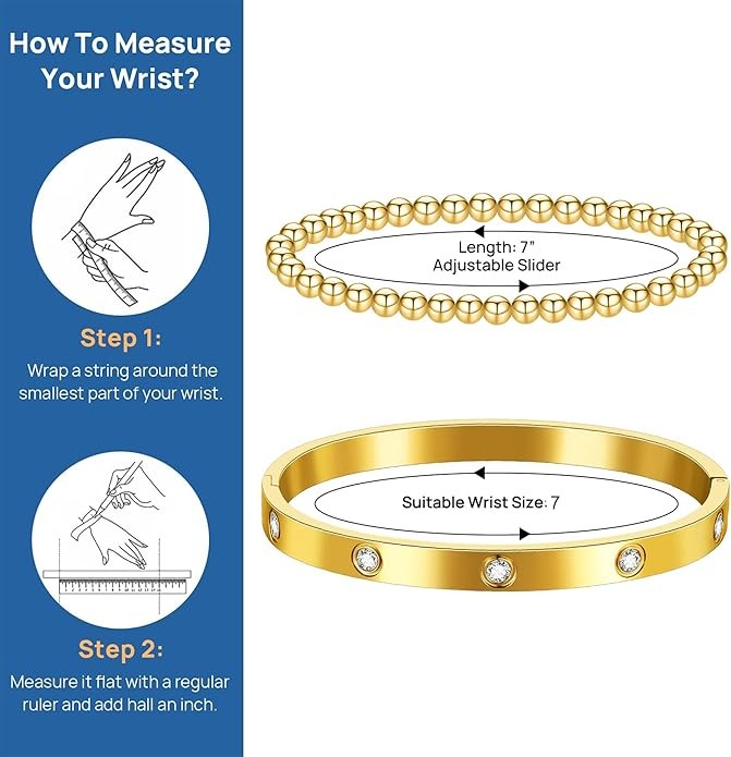 Set of 2: The set includes 1 gold beaded bracelet and 1 gold bracelet, gold beaded bracelets are made of 5mm copper beads and elastic cord. Gold bracelets are made of 316 stainless steel and are plated with 18K gold, making them hypoallergenic and resistant to tarnishing