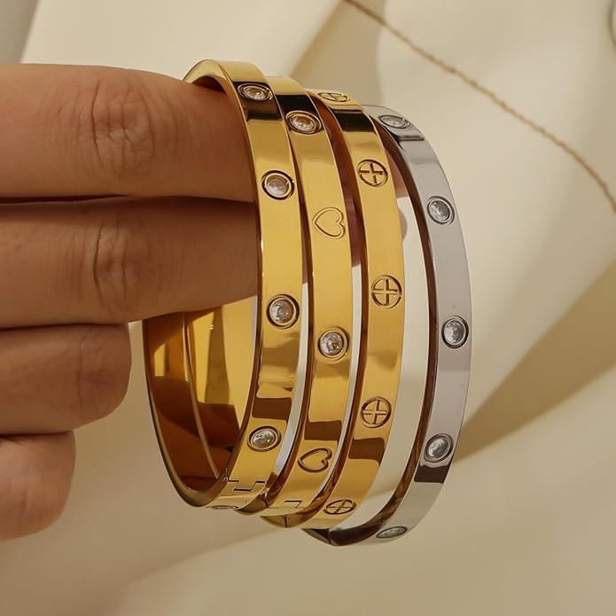 Size Options: The gold bangles for women are available in 3 sizes: 6.6 inches (inner diameter approx. 1.88 inches and 2.2 inches), 7 inches (inner diameter approx. 1.9 inches and 2.3 inches), and 7.5 inches (inner diameter approx. 2 inches and 2.4 inches), catering to most wrist sizes.