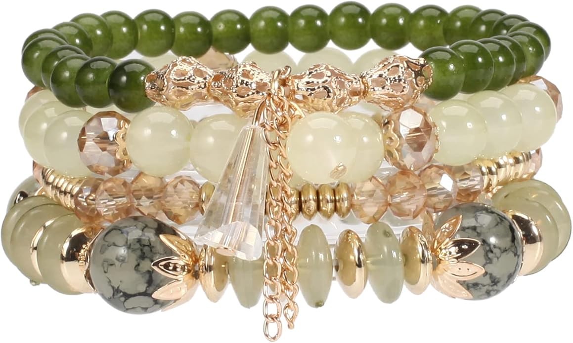 ♥Bohemian Stackeble Beaded Bracelets: These bohemian stackeble beaded bracelets look chic and feel elegant. They are very popular among women. Different color bracelets will have different beauty, you can wear alone or together with other chains to form a sense of hierarchy.
