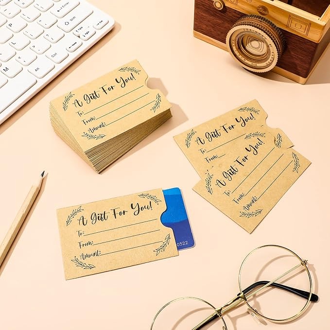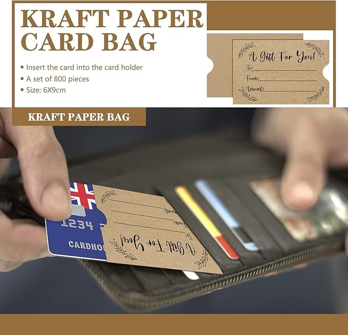 Material and Size Details: our gift card sleeves are made of reliable kraft material, safe and trustworthy, with smooth surface and fine workmanship, you can record some information on them; Each is approx. 2.4 x 3.5 inches/ 6 x 9 cm, can hold most cards