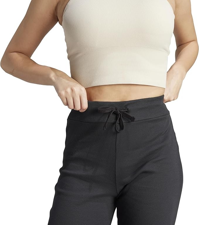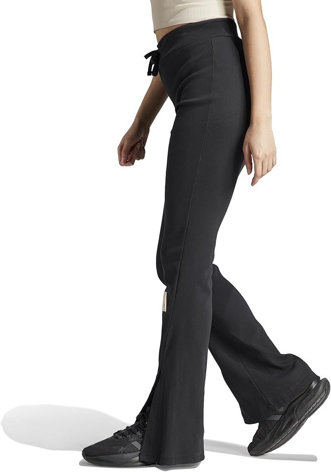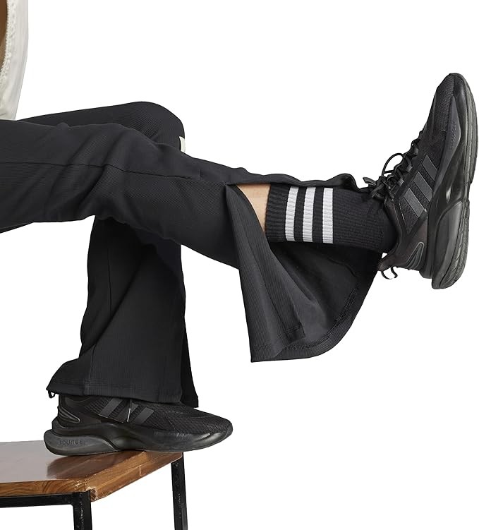 Soft, comfortable fabric perfect for casual or relaxed wear. Ribbed texture for a stylish look and added comfort. Flared legs for a vintage-inspired silhouette. Elastic waistband for comfort and stability. Regular fit.