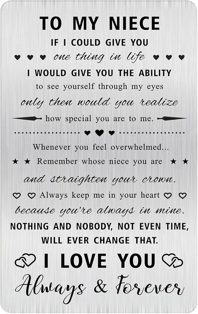 Niece Gifts - Thoughtful and sentimental gifts to niece from aunt uncle, show your affection and love to your niece and show her that she is so special for you, Perfect birthday, christmas, anniversary, mother’s day or just because keepsake