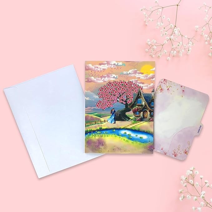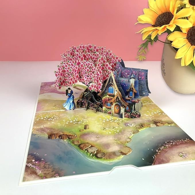 Anniversary Card – Enchanting 3D Pop-Up Love Cottage with Couple Under Cherry Blossom | Romantic Gift for Wife, Husband, or Partner | Valentine’s Day & Mother’s Day Card for Wife (6"x8")