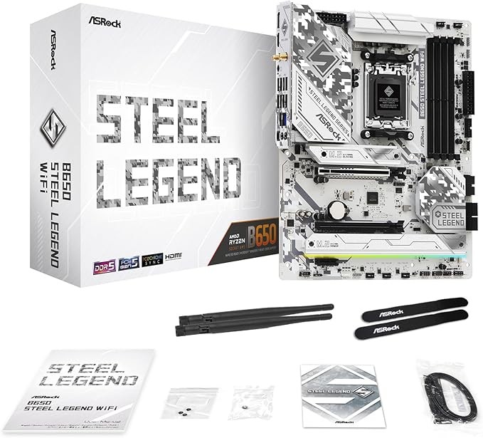 This product supports AMD Ryzen 7000 series processors (AM5). This heavy-duty ATX model features the B650 chipset. It comes with Bluetooth 5.2 and Wi-Fi 6E, offering a variety of wireless features. It uses 20K black capacitors with a lifespan of over 20,000 hours. Dr.MOS design and Vcore ensure smooth CPU power delivery.