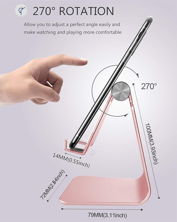 Universal Compatibility: Stand for cell phone work with all 4 -8-Inch smartphones and e-readers, Such as iPhone 16, iPhone 16 Plus, iPhone 16 Pro, iPhone 16 Pro Max, iPhone 15, iPhone 15 Plus, iPhone 15 Pro, iPhone 15 Pro Max, iPhone 14, iPhone 14 Plus, iPhone 14 Pro, iPhone 14 Pro Max, iPhone 13 Pro Max / 13 Pro/ 13/iPhone 12 Pro Max / 12 Pro/ 11/ Xs Max/ Xs/ XR/ X/ 8 7 6 6s Plus 5 5s SE , Galaxy S9 /S9 Plus/S8 / S7 / S6 / Note9/Note 8, LG, IPAD mini, Samsung Tab, Google Nexus, Kindle and so on.