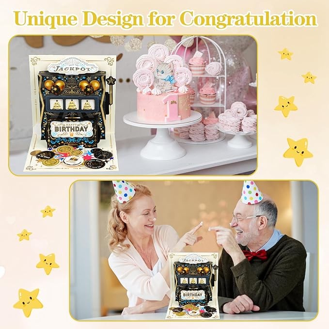 【Funny Birthday Pop Up Card】Enhance birthday celebration with this Casino Jackpot Happy Birthday Greeting Card's stunning 3D pop-up feature, showcasing a vibrant, casino-themed design that reveals a festive and colorful scene. This unique gift will be cherished by your blessed ones, creating a memorable keepsake.