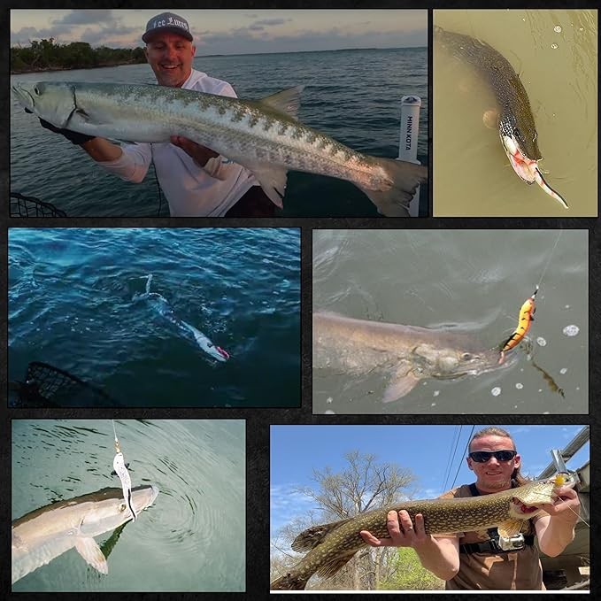 ANISE SCENTED AND ANIMATED LURE: Get ready to catch the biggest predator in the saltwater or freshwater with Delong Lures fishing lure. Our fishing lures for freshwater are Anise scented for maximum effectiveness and features realistic eyes to attract more fish underwater. The fins cause this large musky jerk baits to move erratically and quickly through the water column attracting musky and pike while fresh water fishing and cobia while deep sea fishing.