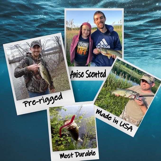 PRERIGGED WITH 3 HOOKS: We use hand tied internal rigs in every KILR worm. they come with 3 hooks to increase your hooksets. perfect for all skill levels.