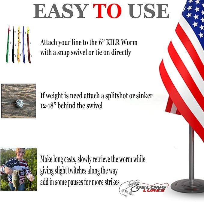 MADE IN AMERICA SINCE 1946: The DeLong 3 hook KILR worm was the first ever soft plastic fishing lure invented by David DeLong in 1946! Ask any old time angler about the DeLong purple worm and their eyes will light up!