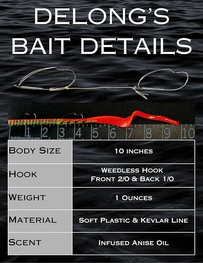 VERSATILE LURES IN YOUR TACKLE BOX: Delong topwater fishing lures and equipment are available in multiple styles. Catch big fish like Largemouth Bass, Smallmouth Bass, Northern Pike, or Striper. Our Black lures, Green Pumpkin lures, Pumpkinseed lures, Catfish lures, FireTiger lures, Red Bug lures, fishing worms make excellent fishing gifts for men and women. Our top water lures are sure to impress them whether you are fishing from a boat or shore.