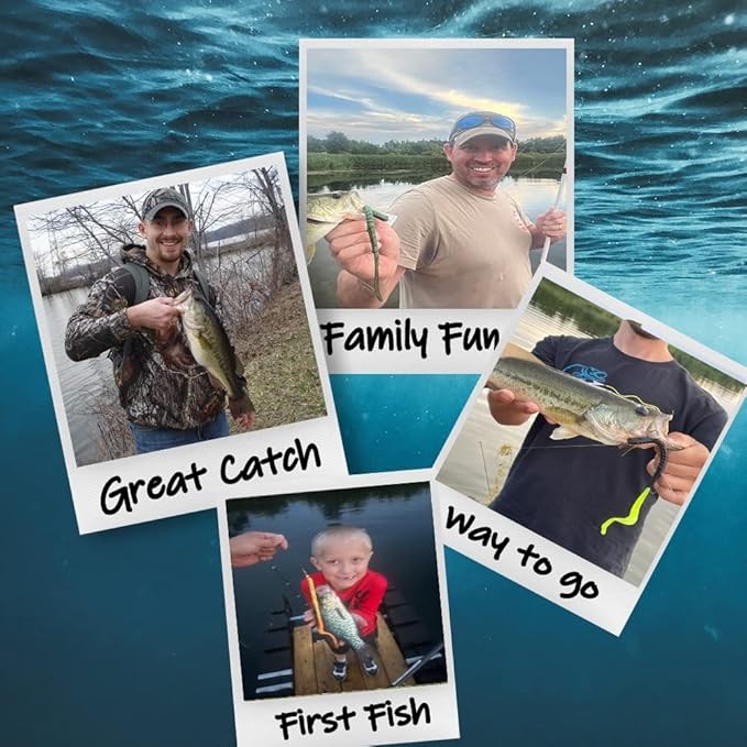 MADE IN USA SINCE 1946: Our bass lure pack had millions of satisfied customers for more than 75 years who have successfully used this pre-rigged bait for largemouth bass in ponds, creeks, lakes, and rivers. The hand-poured soft plastic fishing lures are anise-scented with weedless hooks molded in. Our easy-to-use barbless fishing lures are sure to produce huge bass! Our 6-inch fishing lure is better than Senko worms for bass fishing. Our swimbait for bass fishing are great with high catch rates.