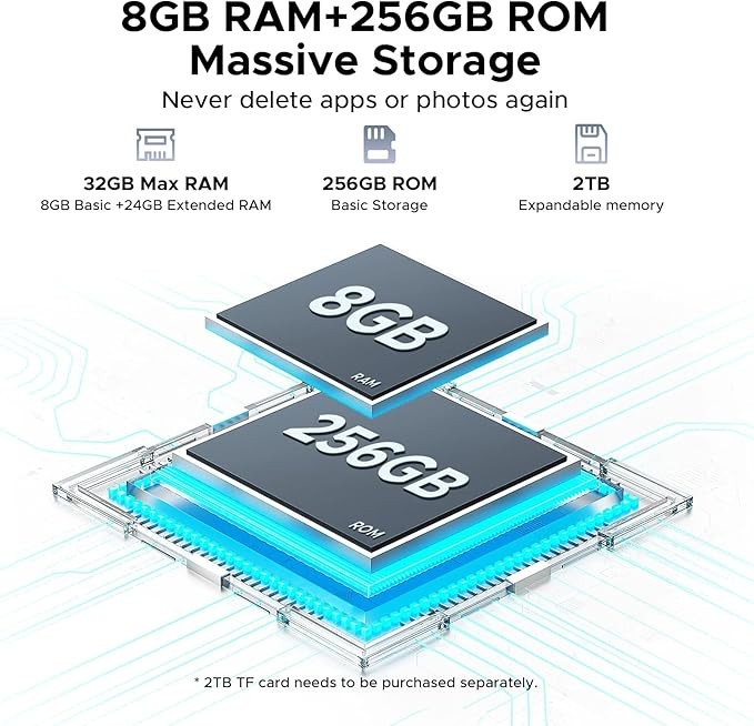 【???? (?+??)??? + ????? ???/??? ??????????】Enjoy unbeatable performance with 32GB RAM (8GB + 24GB expandable) and 256GB of fast UFS storage.This Android 15 tablet allows seamless switching between apps, lag-free gaming, and space for your media library.Store thousands of photos, hours of video, and a full suite of productivity apps with ease.Need more room?Expand your storage up to 2TB via TF card.Whether you're a student, professional, or creative, this 12 inch tablet delivers speed and capacity for any workload.