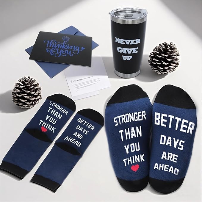 Encouraging Message Design for Him–Almost items in this care package features motivational phrases like "Never Give Up" “Thingking of you” and "Wellness" on included items to inspire strength. Ideal as feel better gifts for men who need encouragement. Brighten your loved one’s day with this luxurious gift set, he will love it!