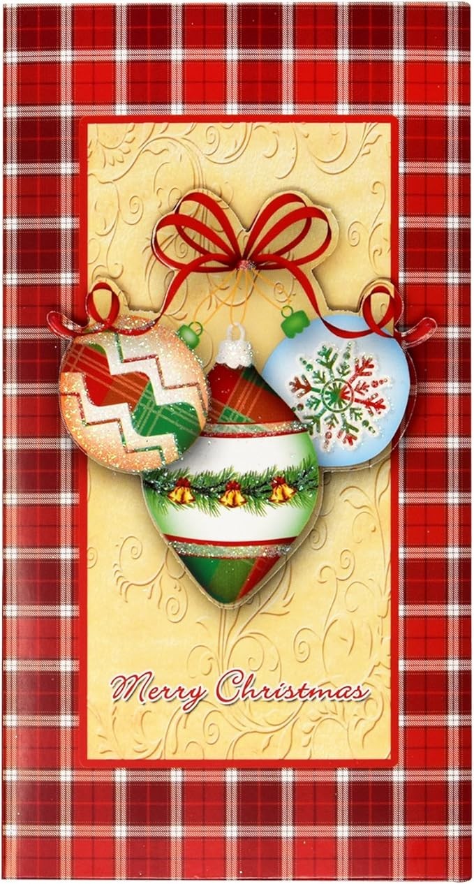 Gift Boutique Set of 12 Christmas Money or Gift Card Holders features 4 different pop up designs with glitter accents 3 of each design: Christmas stocking, Merry Christmas tree, Christmas wreath and Christmas ornaments.