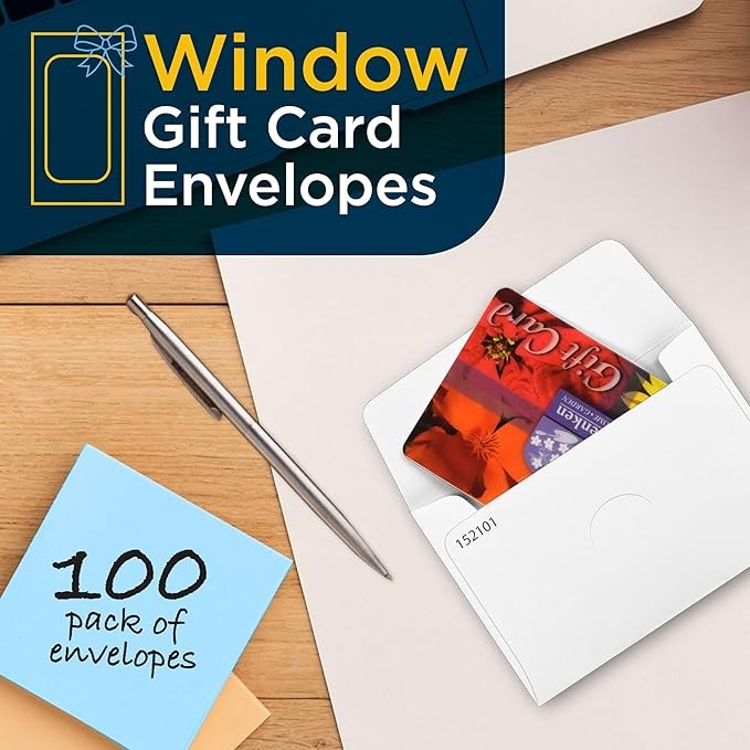 Guardian Gift Card Envelopes with Clear Window, Pack of 100 Blank Small Envelopes for Gift Cards, Business Cards, Key Cards, and More, 2 ½ Inches x 3 ⅝ Inches, White