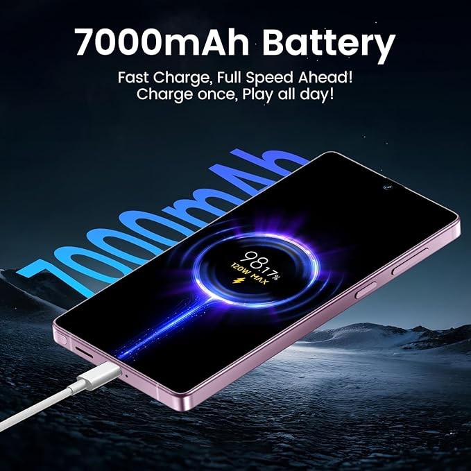 【7000mAh Battery – 2-Day Life vs 5000mAh Rivals】 Last 48hrs on a single charge— longer than average 5000mAh phones. 45W fast charging refuels 70% in 30 minutes, ideal for travelers ,Includes battery health AI ignored by budget brands.