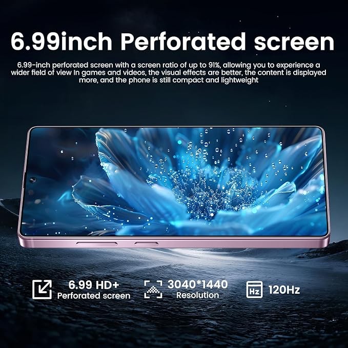 【6.99" FHD+ AMOLED – Giant Screen, Zero Compromises】 A vast 6.99" display (vs. 6.7" standard) with 120Hz refresh rate and 1300nit brightness— brighter than rivals.Gorilla Glass Victus 2 resists 2x more drops than competitors’ Gorilla Glass 5.Ultra-thin 3.9mm bezels offer screen-to-body ratio Perfect for movies, gaming, and productivity.