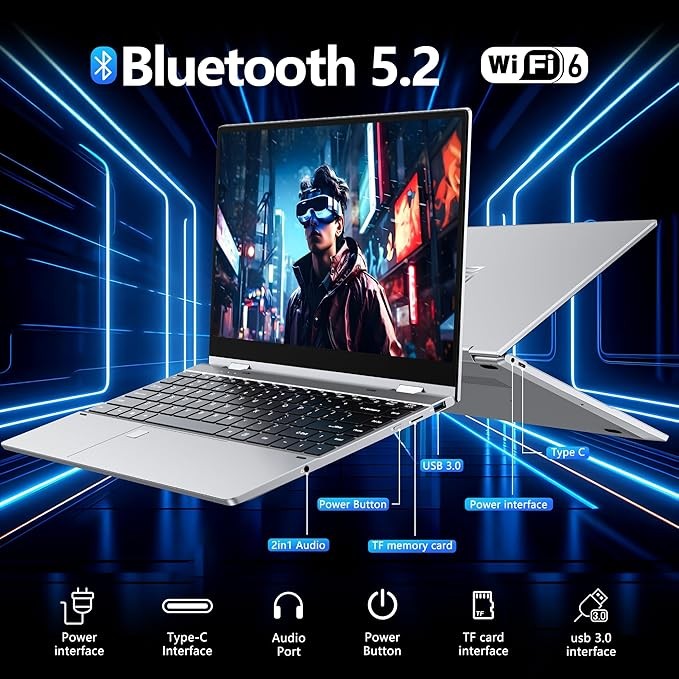 【Multi-Connection】1x SuperSpeed USB Type-C, 2x SuperSpeed USB 3.2 ports, 1x HDMI, 1x TF card slot, 1x Headphone/Microphone combo, Wi-Fi, Bluetooth. this laptop meets all your connectivity needs. The full-size ergonomic keyboard and large trackpad enhance your typing and navigation experience.