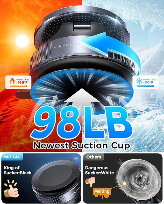 MRGLAS 2026 Upgraded Vacuum Magnetic Phone Holders for Your Car 360° Adjustable Absorption Magnetic Bracket 98LBS Magsafe Suction Cup Phone Mount for iPhone 17 Car Truck Accessories for Men Women
