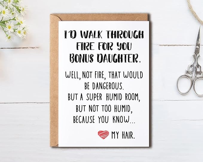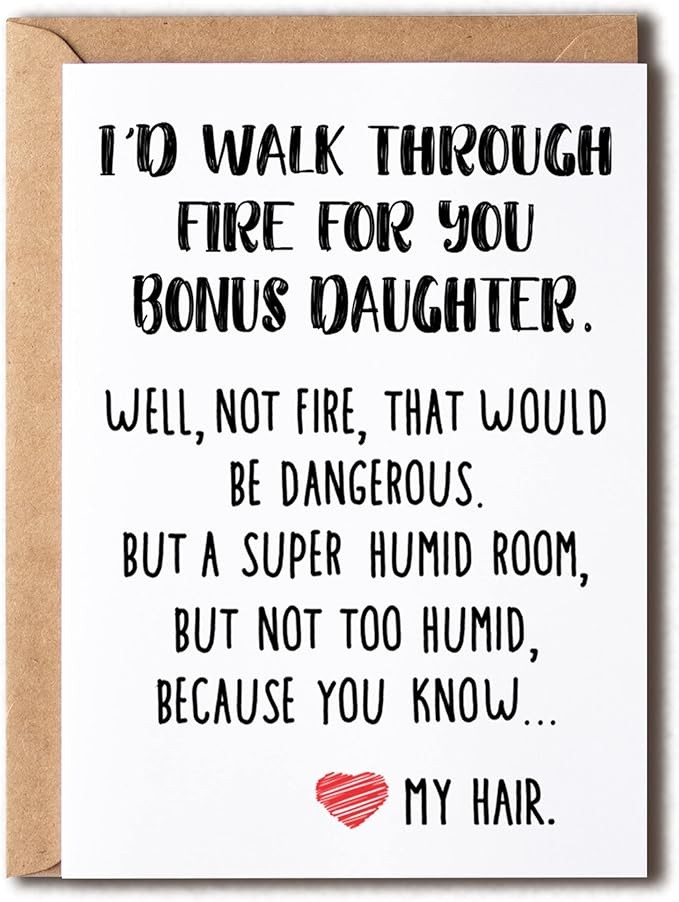 OystersPearl Gifts For Bonus Daughter From Mom I'd Walk Through Fire For You Bonus Daughter Card - Bonus Daughter Gifts For Her Graduation Gifts - Daughter Card