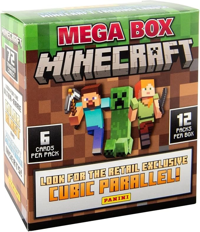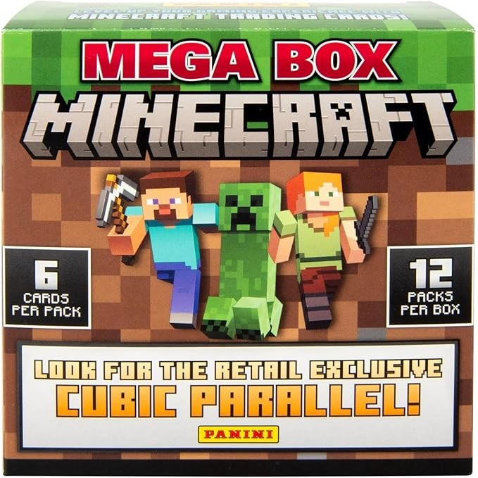 Panini Minecraft Mega Box – Official Trading Cards, 72 Cards per Box, Exclusive Foil Parallels, Rare Inserts, Great Gift for Kids & Gamers
