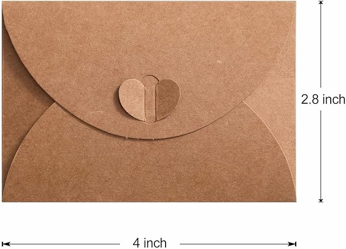 Primbeeks 100 Pcs Premium Gift Card Envelopes, 4 x 2.8 inch Gift Card Holders, Mini Seed Kraft Paper Cute Envelopes with Heart Clasp for Gift Cards, Weddings Favors, Party Favors