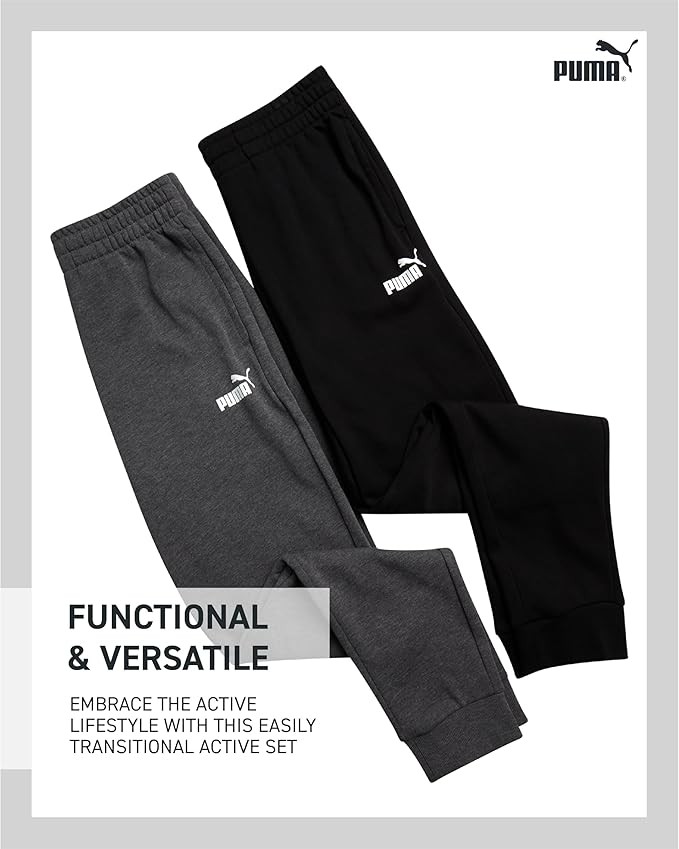 PUMA Boys Sweatpants - 2 Pack French Terry Performance Jogger Pants for Boys - Soft Activewear Jogger Pants (Sizes: S-XL)