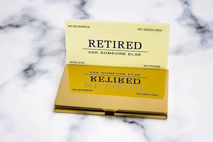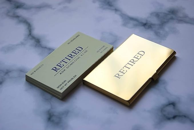 RXBC2011 Retired Business Cards Funny Retirement Gift (Pack of 50/With Gold Mirror Stainless Steel Case) For Retired Men Women Coworkers Employees Boss Friend Colleague