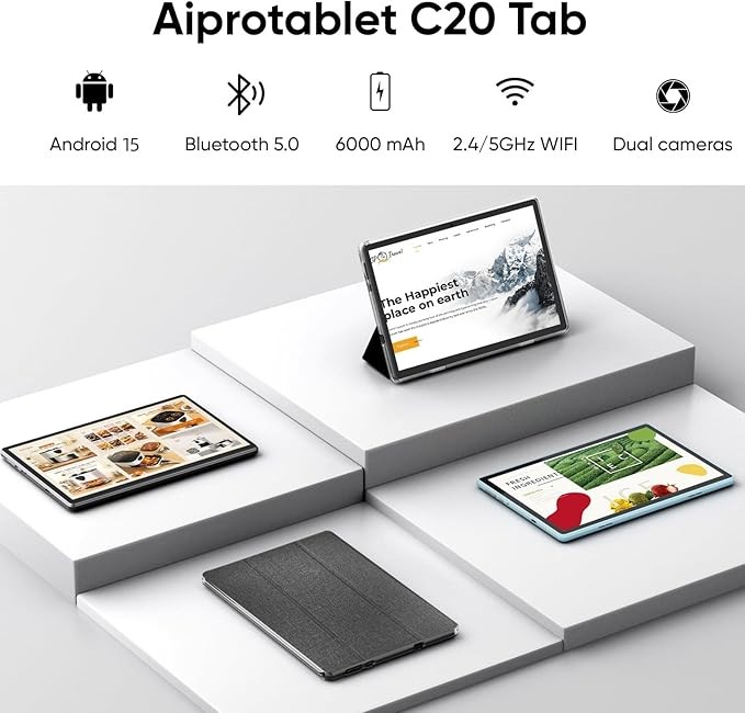 High Performance - The Aiprotablet tablet runs on Android 15 (Not Go) with a 2.0GHz Quad-Core Processor, delivering fast operation and seamless multitasking. Perfect for work, reading, studying, and entertainment