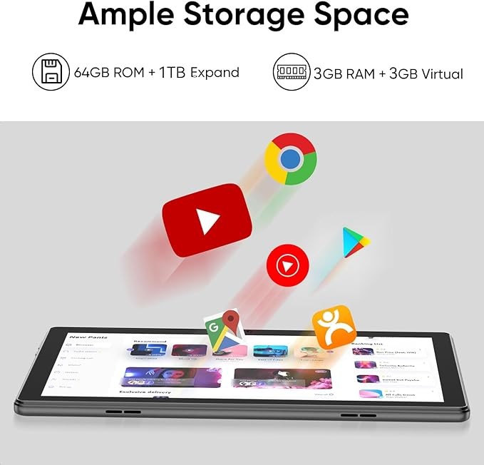 Massive Storage - The tablet comes with 64GB ROM and expandable up to 1TB via microSD card (not included). It comes preloaded with the Google Play Store, so you can easily download any apps you need