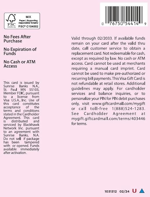 To protect the money loaded to this card, the gift card recipient should register with Visa. To register your card, view FAQ’s, or find more information about your Visa gift card, please visit mygift.giftcardmall.com.